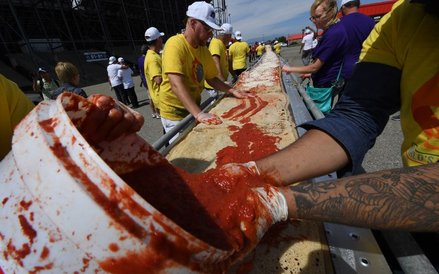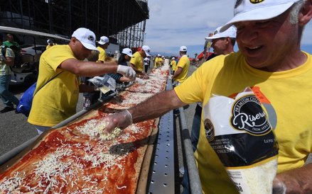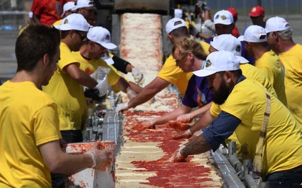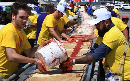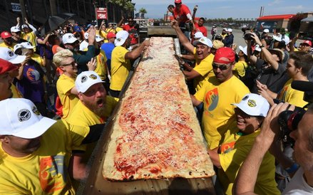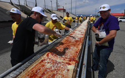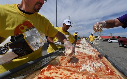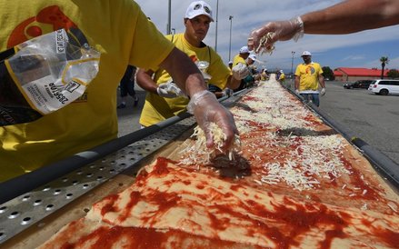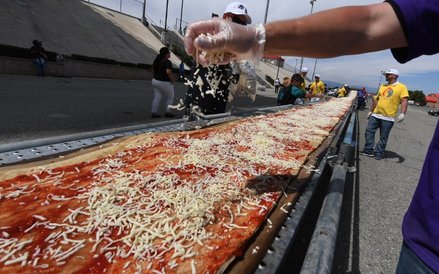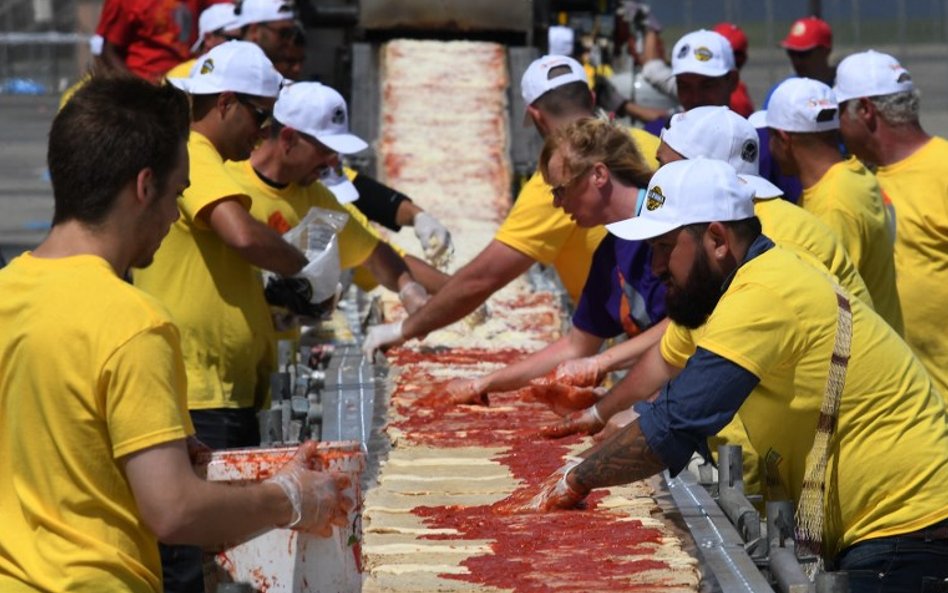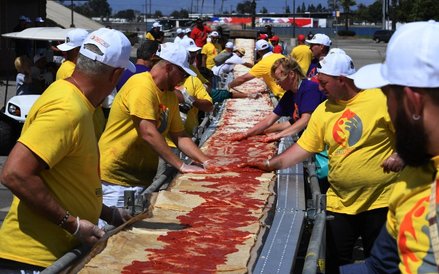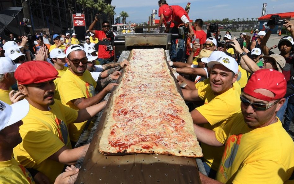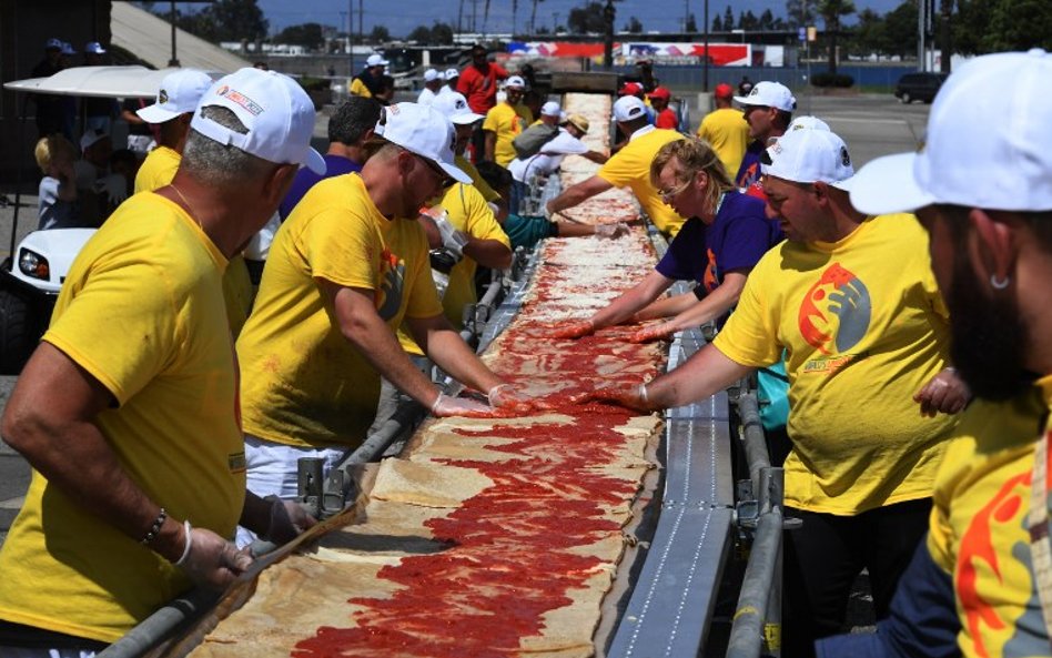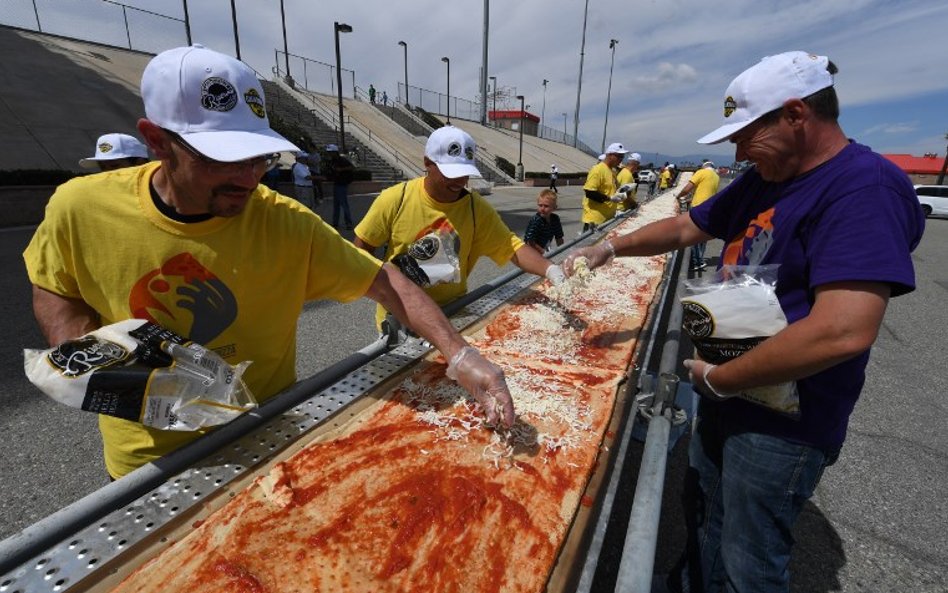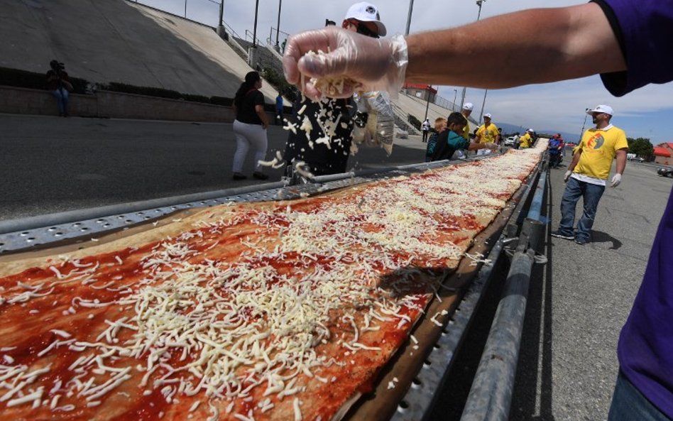 W Fontanie w Kalifornii próbowano pobić rekord najdłuższej pizzy na świecie. Wyznaczyli sobie cel - przygotować pizzę o długości ponad 2,13 km. Choć efekt końcowy był zadziwiający, według Księgi Rekordów Guinessa pierwsze miejsce nadal należy do pizzy z Neapolu. Obejrzyj zdjęcia.