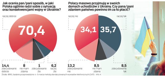 Badani przez IBRiS są zdania, że Polska dobrze radzi sobie z konsekwencjami wojny w Ukrainie, i raczej nie oczekują, że państwo będzie płacić za udzielanie gościny uchodźcom.