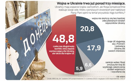 Największa grupa wybrała odpowiedź mocno pesymistyczną: prawie połowa badanych (48.8 proc.) uważa, że „czeka nas długotrwały konflikt, który będzie wyniszczający dla Ukrainy, ale także dla krajów UE”. Pesymizm co do wojny skorelowany jest do pewnego stopnia z poglądami politycznymi: aż 61 proc. wyborców niezdecydowanych, na kogo zagłosują w następnych wyborach, uważa, że wojna długo potrwa. Takiego samego zdania jest 51 proc. zwolenników opozycji i tylko 36 proc. elektoratu PiS.