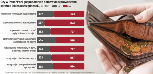 IBRiS na zlecenie „Rzeczpospolitej” zapytał Polaków o to, czy wprowadzili już w swoim gospodarstwie domowym jakieś oszczędności. Większość badanych udzieliła odpowiedzi przeczącej, ale w obszarach np. rezygnacji z używania samochodu, co wiąże się z wysokimi cenami paliwa i wydatków na kulturę, twierdząco odpowiada ok. 40 proc. badanych.