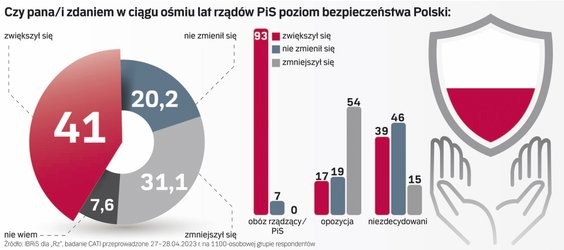 "Jak Pani/Pana zdaniem osiem lat rządów PiS wpłynęło na poziom bezpieczeństwa Polski?" - takie py...