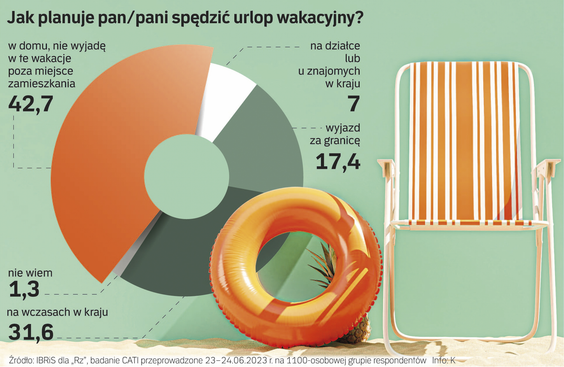 Prawie połowa badanych przez IBRiS szykuje się w tym roku na wakacyjny urlop – 31,6 proc. chce relaksować się w kraju, a 17,4 proc. za granicą. Mniej liczni wybiorą działkę lub wyjazd do znajomych. Jednak aż 42,7 proc. badanych deklaruje, że zostanie w domu i nie ruszy się poza miejsce zamieszkania – wynika z sondażu IBRiS dla „Rzeczpospolitej".