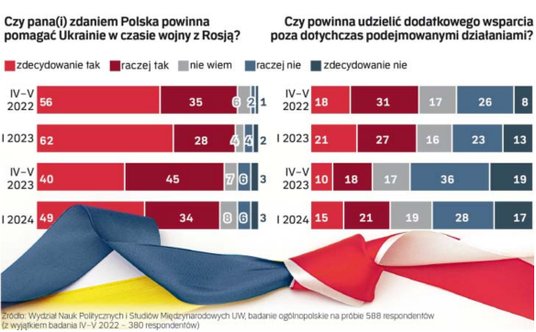 Znacząco zmieniła się akceptacja finansowania kosztów zakwaterowania i wyżywienia – obecnie korzysta z tego rozwiązania 42,2 tys. Ukraińców i mimo wprowadzenia w ubiegłym roku częściowej odpłatności egzekwowanie tego obowiązku jest trudne. W styczniu 2024 r. przeciwników tej formy pomocy było o 24 pkt proc. więcej niż w kwietniu 2022 r. – podaje dr Staniszewski.