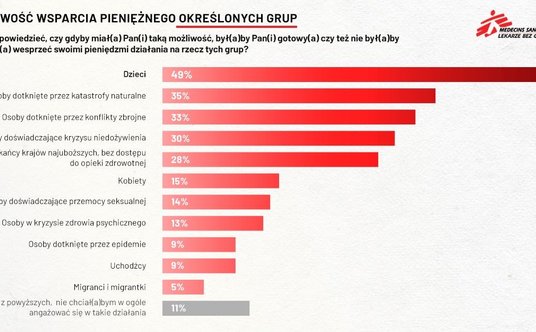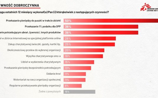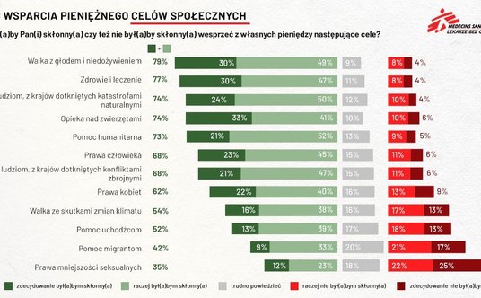 Jak mówi Draginja Nadażdin, dyrektorka Lekarzy bez Granic w Polsce, „ tegoroczne wyniki są bardzo budujące”. - Wygląda na to, że “przebudzenie pomocowe” Polaków, jakie obserwowaliśmy w związku z pomocą dla Ukrainy, jest trwałe. Oczywiście formy tej pomocy zmieniły się, wraz ze zmieniającymi się potrzebami. Jednak to wspólne doświadczenie z początku pełnoskalowej agresji rosyjskiej, spontaniczny wysiłek, żeby pomóc potrzebującym ludziom i wzruszające obrazy tej pomocy najwyraźniej zostały z nami na dłużej - zaznacza.
