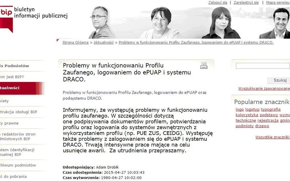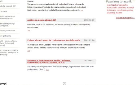Przyznaje, że pierwsza informacja o problemie umieszczona została na stronie BIP (www.bip.gov.pl) już wczoraj, ale była tak ukryta, że trudno ją było znaleźć.