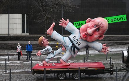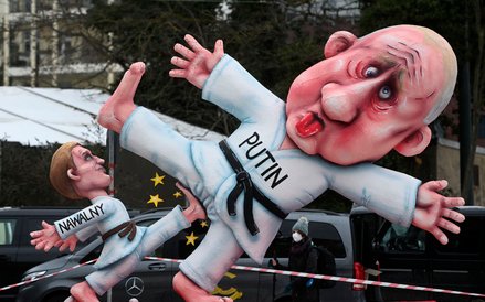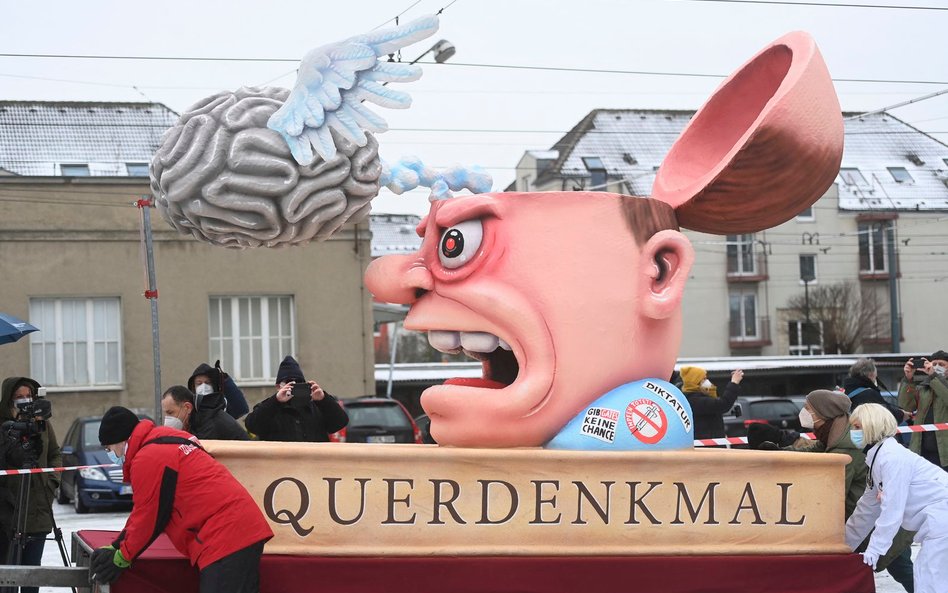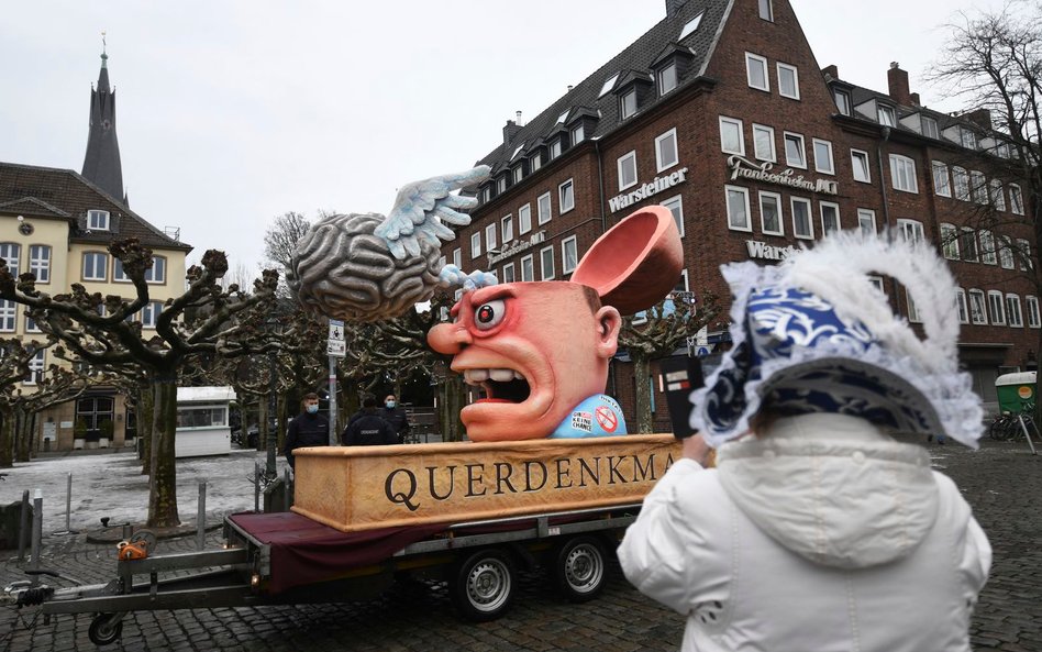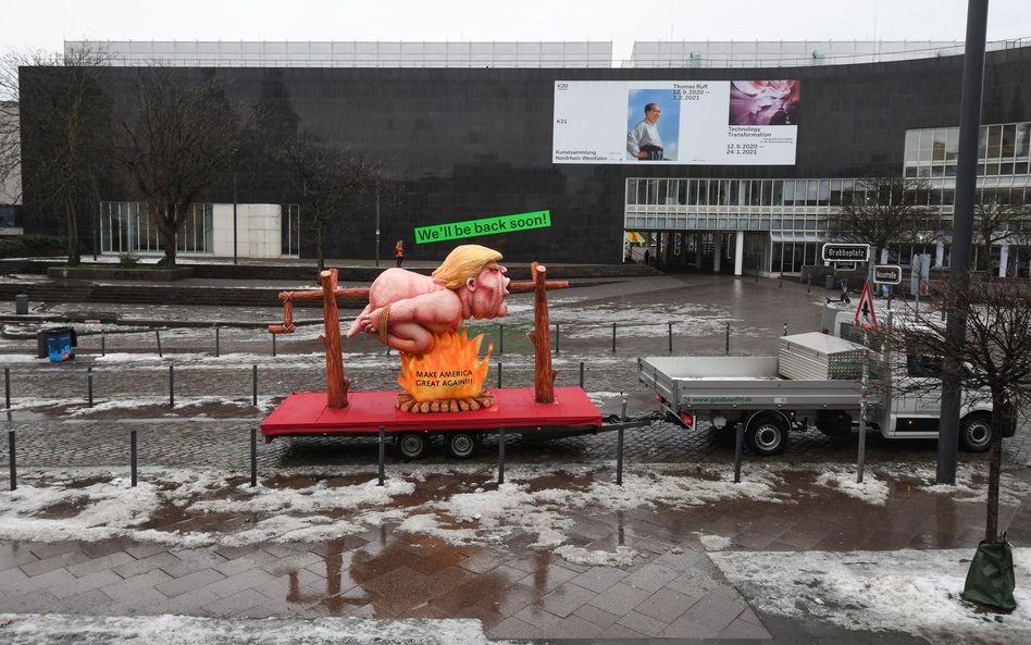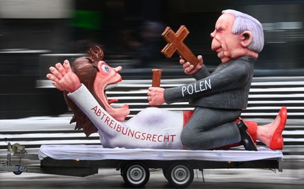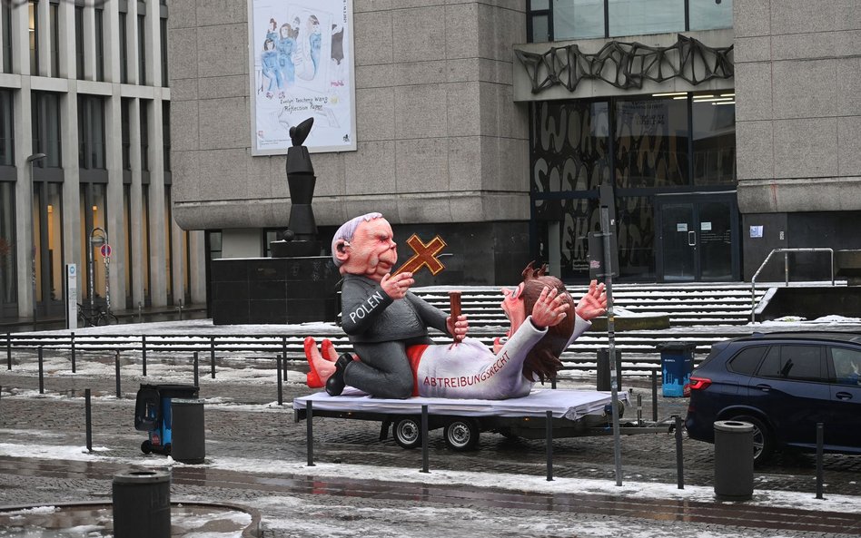 Ulicami Düsseldorfu z powodu pandemii nie przeszła w tym roku tradycyjna karnawałowa parada. Nie zabrakło jednak słynnych prześmiewczych figur polityków z całego świata. Był też polski akcent - pojawiła się makieta przedstawiająca Jarosława Kaczyńskiego, wbijającego krzyżem kołek w kobietę.