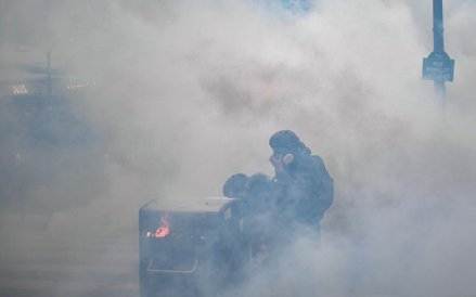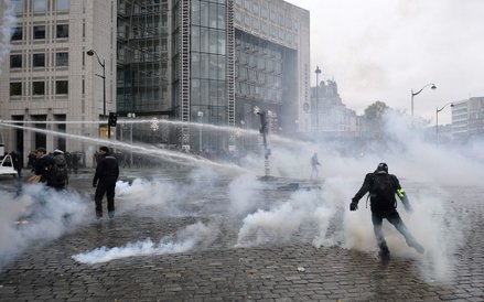 Policjanci użyli armatek wodnych i gazu łzawiącego.
