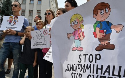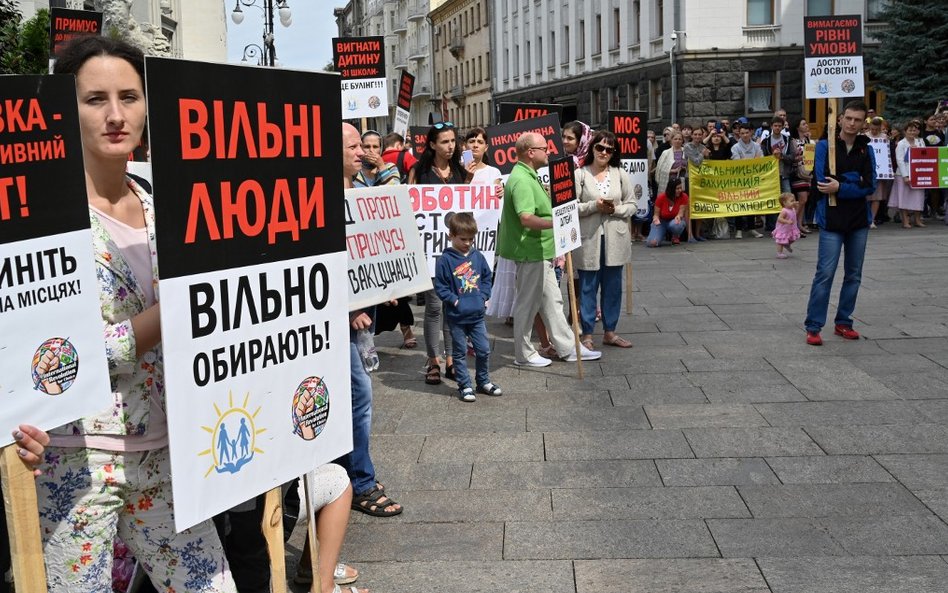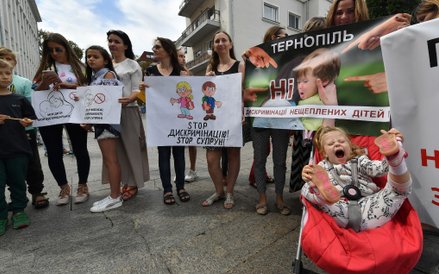 Protest w centrum Kijowa spowodowała groźba władz państwowych z połowy sierpnia, które zapowiedziały, że nieszczepione dzieci nie będą miały prawa wstępu do szkół.