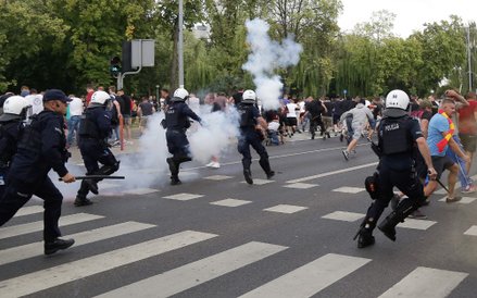 Nie mamy na tę chwilę informacji o ewentualnych rannych manifestantach. Trwają czynności procesowe. Do jednostek policji doprowadzono łącznie 20 osób, w tym cztery podejrzewane o popełnienie przestępstw: rozboju, naruszenia nietykalności funkcjonariuszy, użycia gróźb karalnych i znieważenia funkcjonariuszy. 16 osób ukarano mandatami karnymi - powiedział nadkomisarz Tomasz Krupa.