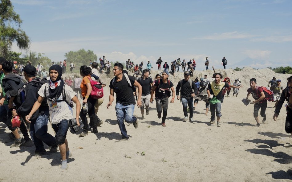 Setki migrantów z Ameryki Środkowej próbowało się dziś dostać do Meksyku. Gdy przeprawiali się przez rzekę na granicy z Gwatemalą, armia wystrzeliła gaz łzawiący, by zmusić ich do odwrotu.