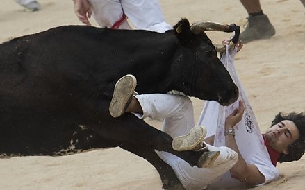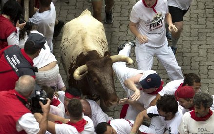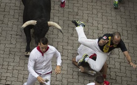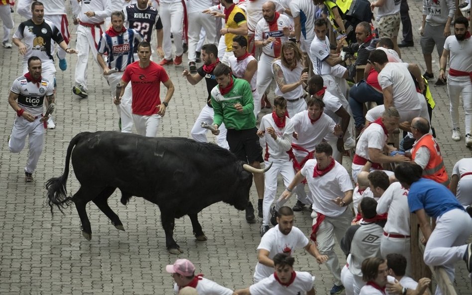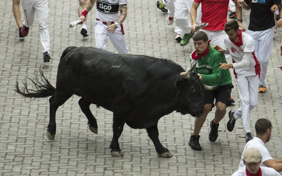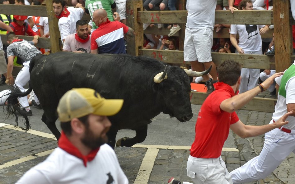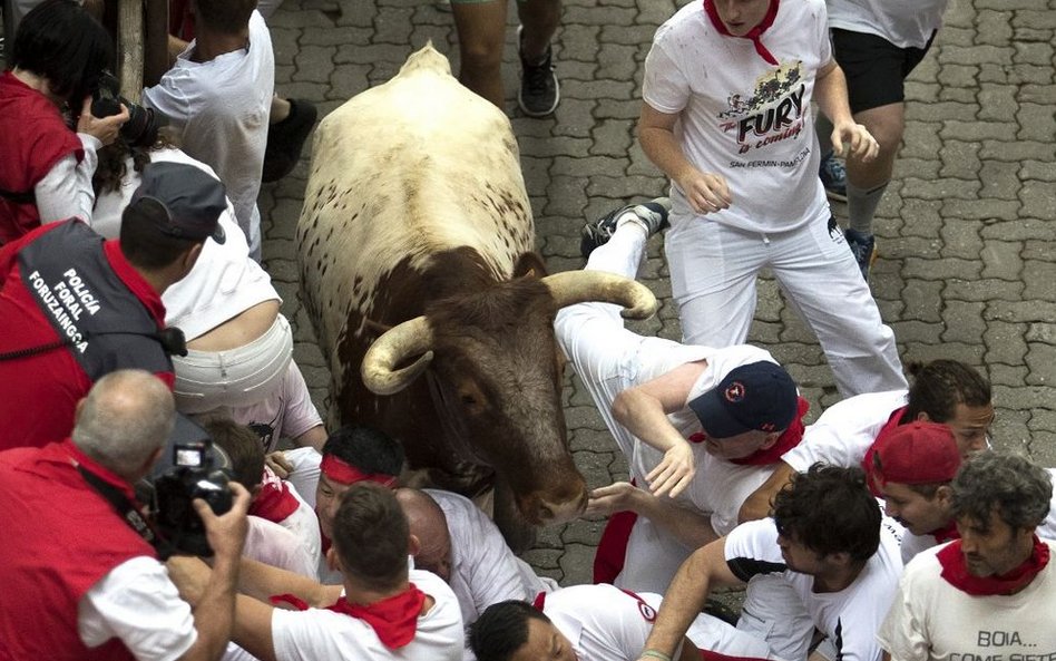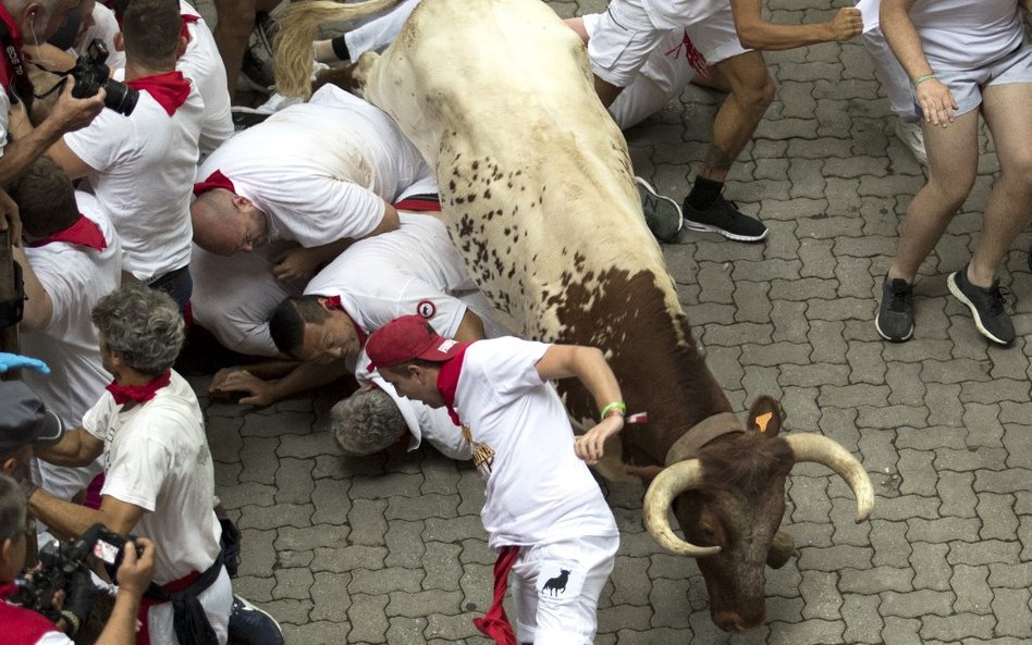 Róg jednego z byków przebił szyję 46-letniego Amerykanina z San Francisco. Mężczyznę czeka operacja. Przebite nogi mają 23-letni mężczyzna z Kentucku oraz 40-letni Hiszpan. Dwaj inni mężczyźni trafili do szpitala z obrażeniami głowy.