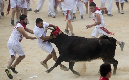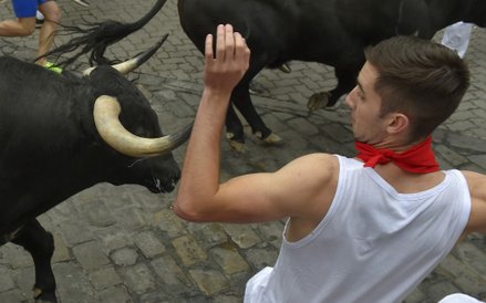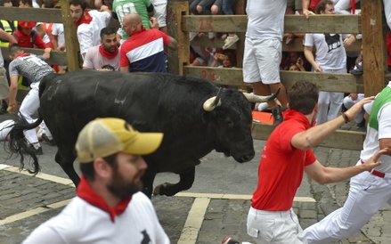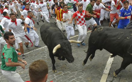 Do Pampeluny każdego roku na ten festiwal przyjeżdża około miliona turystów. Wielu z nich bierze udział w gonitwie z bykami.
