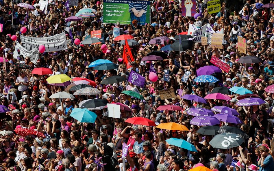 Kobiety, które nie mogą cały dzień protestować, były zachęcane do wyjścia z pracy o 15:24. - Po tej godzinie kobiety pracują za darmo - powiedziała główna organizatorka protestów Anne Fritz.