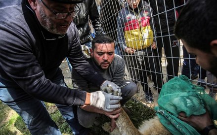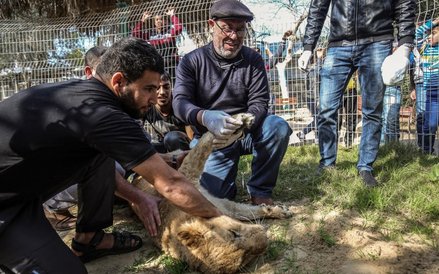 Pracownicy palestyńskiego zoo położyli kawałek materiału na głowie 14-letniej lwicy Falestine. W tym czasie weterynarz za pomocą nożyc obciął jej pazury. Przedstawiciele zoo chcą, by lwica bawiła się z gośćmi, mimo że ma nadal wszystkie zęby.