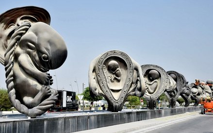 Ogromna instalacja znajdująca się przed ośrodkiem medyczno-badawczym Sidra w Dausze w Katarze to 14 monumentalnych rzeźb z brązu przedstawiających kolejne fazy rozwoju nienarodzonego dziecka. Kilkunastometrowe rzeźby powstawały przez 3 lata i ważą łącznie 216 ton. Wieńcząca kompozycję rzeźba nowo narodzonego dziecka liczy 14 metrów wysokości. Autorem instalacji „Cudowna podróż” jest światowej sławy brytyjski artysta Damien Hirst. Praca warta jest 8 mld dolarów.