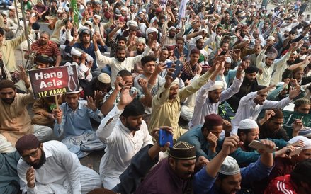 Wciąż grozi jej śmierć z rąk radykalnych muzułmanów, głównie zwolenników TLP, którzy grożą kobiecie i jej najbliższym. Po ogłoszeniu wyroku zwolennicy partii protestowali na ulicach Islamabadu i innych miast Pakistanu [zdjęcia].