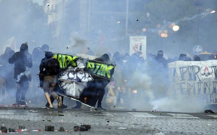 Demonstrację zakłóciła grupa ok. 1200 zamaskowanych anarchistów, którzy stosowali tzw. taktykę czarnego bloku - w czarnych ubraniach i z zamaskowanymi twarzami, aby utrudnić identyfikację,  demolowali sklepy, niszczyli samochody i próbowali budować barykady.