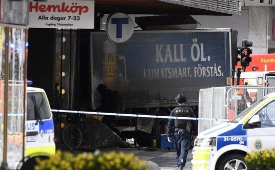 Szwedzka policja o 14:53 otrzymała powiadomienie o ciężarówce, która rozjeżdżała przechodniów i uderzyła w ścianę centrum handlowego w Sztokholmie.