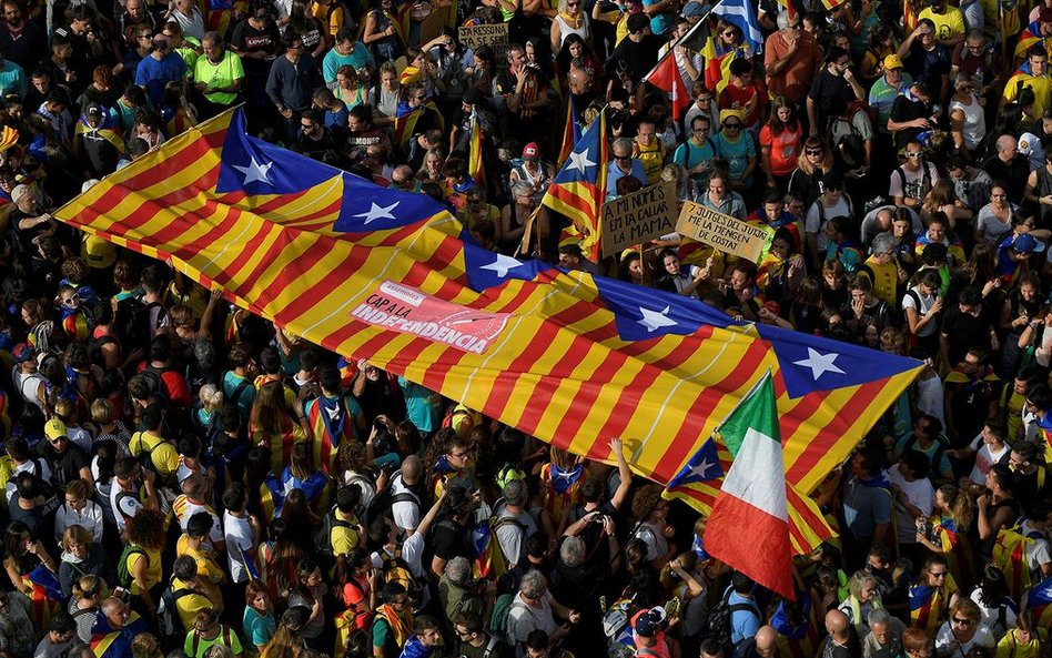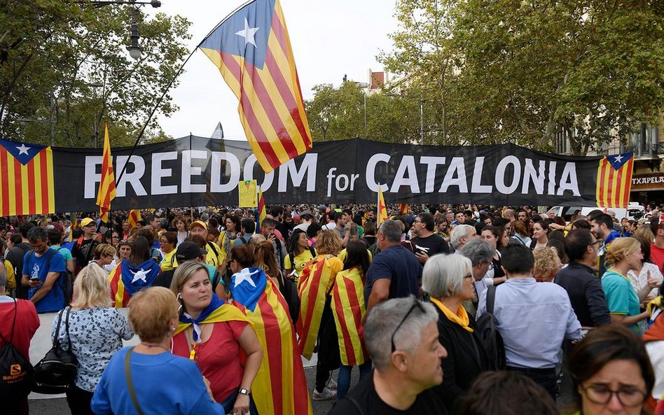 Protestujący przybywają do Barcelony z całej Katalonii. Część rozpoczęła marsz w środę. Demonstranci domagają się wolności "dla więźniów politycznych", wielu ma flagi i żółte wstążki - symbol sprzeciwu wobec uwięzienia przywódców separatystów.
