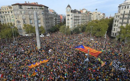 Setki tysięcy demonstrantów, zwolenników niepodległości Katalonii, przybywają do Barcelony. To piąty dzień protestów przeciw karom więzienia dla przywódców separatystów.