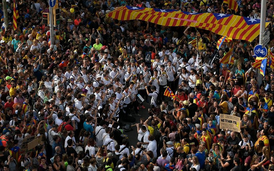 Setki tysięcy demonstrantów gromadzą się w Barcelonie