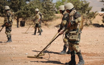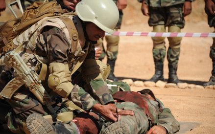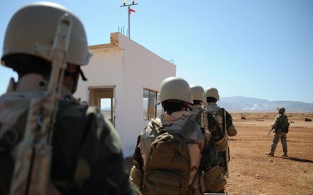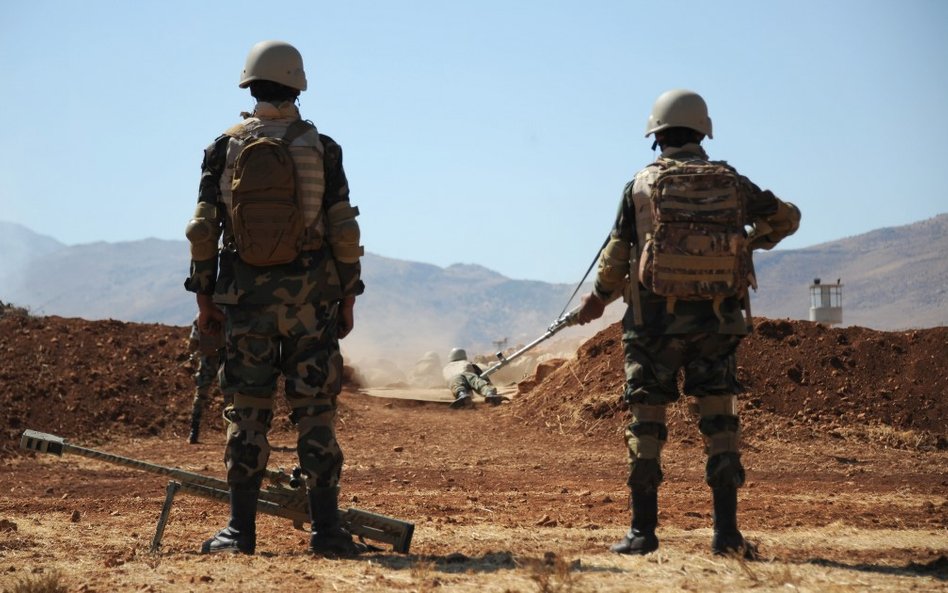 Na terenach wiejskich położonych na zachód od Damaszku żołnierze szkolą się z przeprowadzania szturmów, ostrzału moździerzowego i rakietowego oraz oczyszczania terenu z min i udzielania pierwszej pomocy.