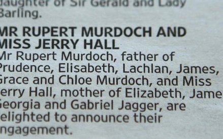 59-letnia Jerry Hall została panią Murdoch dwa miesiące po tym, jak ogłoszono zaręczyny pary. Cywilna ceremonia odbyła się dziś w Londynie, w Spencer House, na sobotę zaś zaplanowano ślub kościelny w kościele St. Bride. Świadkami pary byli syn Murdocha, Lachlan i najlepsza przyjaciółka Hall, Suzanne Wyman, żona Billa Wymana z "Rolling Stones".