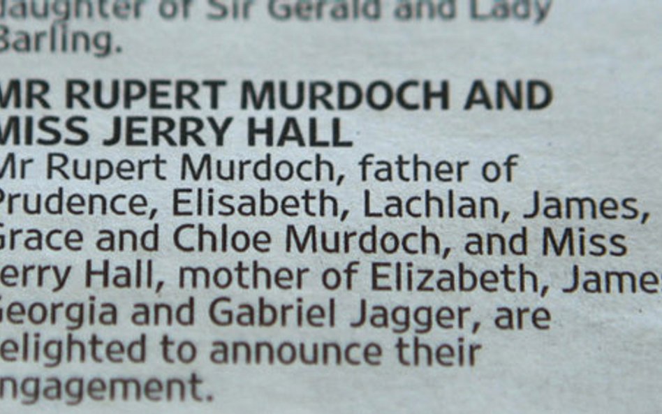 Rupert Murdoch miał już trzy żony - z ostatnią, Wendi Deng rozwiódł się trzy lata temu. Dla Jerry Hall - to drugie małżeństwo, choć formalnie rzecz biorąc... pierwsze. Ślub, jaki wzięła z Mickiem Jaggerem na Bali w 1990 roku, został uznany za nieważny.