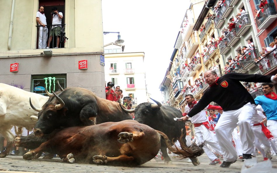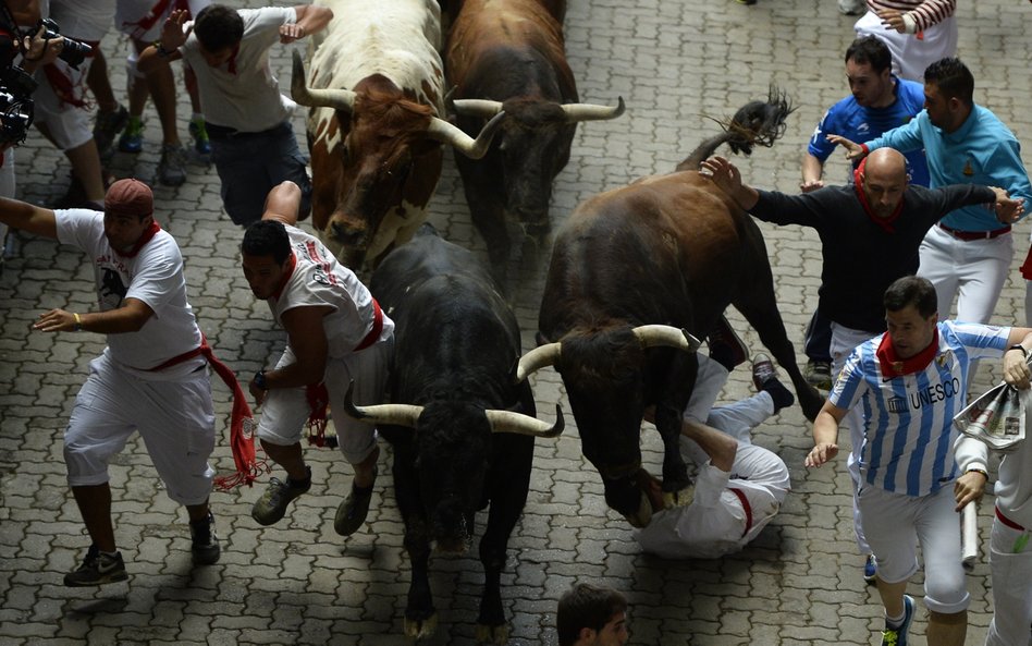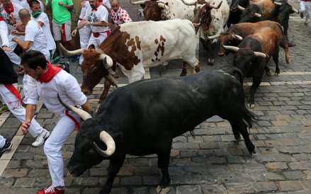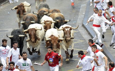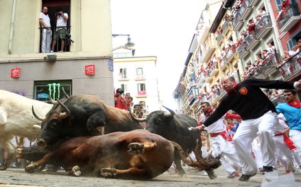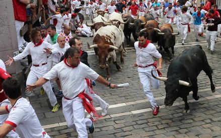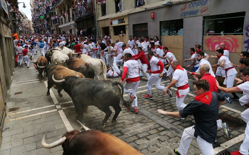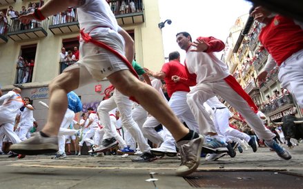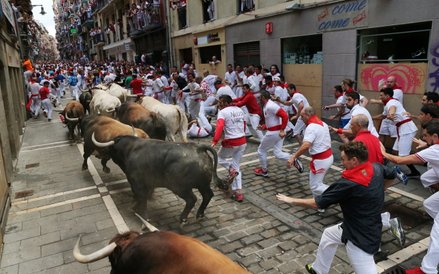 W gonitwie uczestniczą śmiałkowie ubrani w tradycyjne stroje baskijskie: białe spodnie i koszule, czerwone paski, berety i chustki na szyję. Trzymając w dłoni zwinięte gazety poganiają zwierzęta. Stado byków pędzone jest wąskimi uliczkami Pampeluny na Plaza de toros, gdzie wieczorem odbędzie się corrida w której byki zostaną stracone.