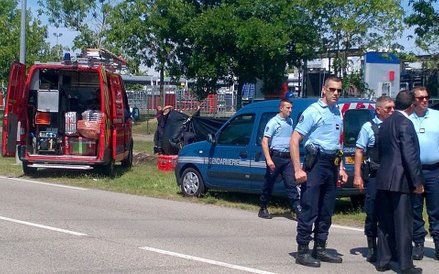 Na miejscu zamachu aresztowano domniemanego zamachowca. Na początku nie było jasne, kogo zatrzymała francuska policja. Portal dużej lokalnej gazety Le Dauphiné Libéré najpierw podał, że przesłuchiwany jest mężczyzna w wieku około 30 lat, który już wcześniej był znany służbom specjalnym.