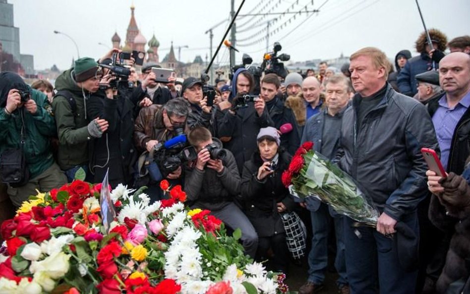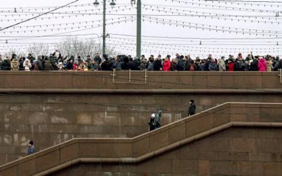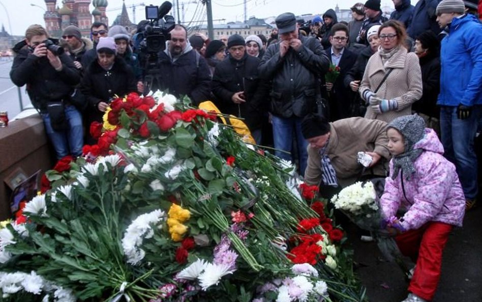 Tysiące ludzi składają kwiaty na moście Moskworieckim, gdzie dziś w nocy został zastrzelony rosyjski opozycjonista Borys Niemcow.