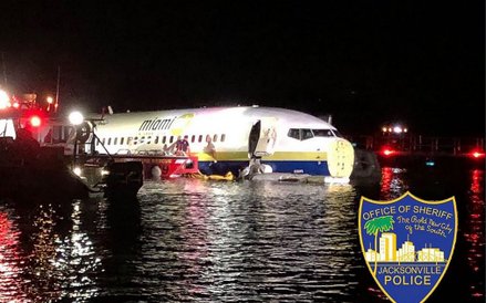 Podczas próby lądowania na Naval Air Station w Jacksonville boeing zsunął się z pasa i wylądował w rzece Św. Jana, najdłuższej rzece Florydy.