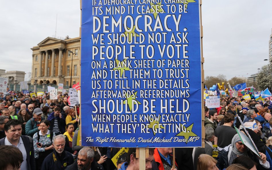 Setki tysięcy Brytyjczyków demonstrowały przeciwko brexitowi. Protestujący domagali się też przeprowadzenia drugiego referendum, które mogłoby doprowadzić do odwołania brexitu.