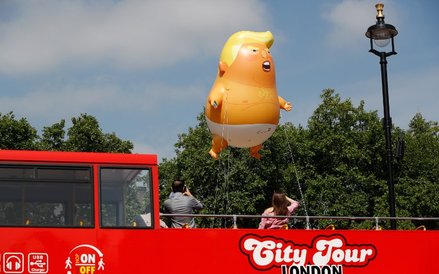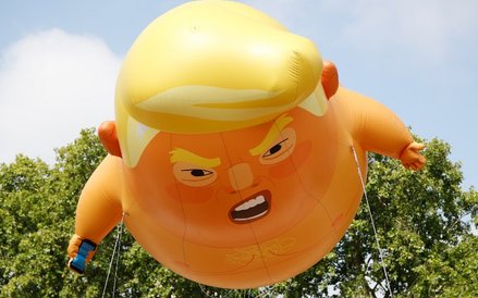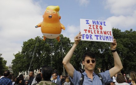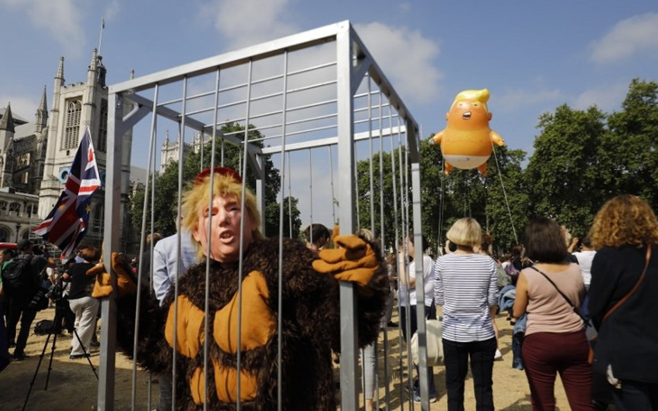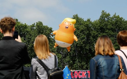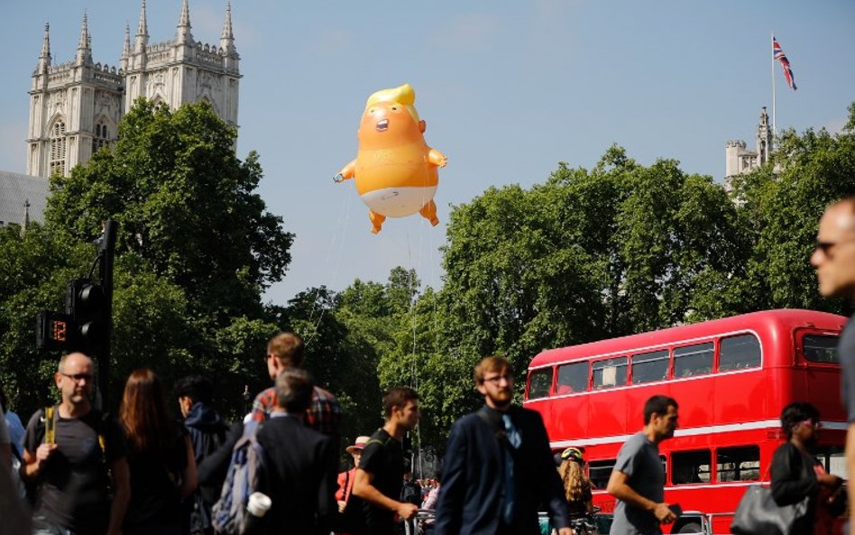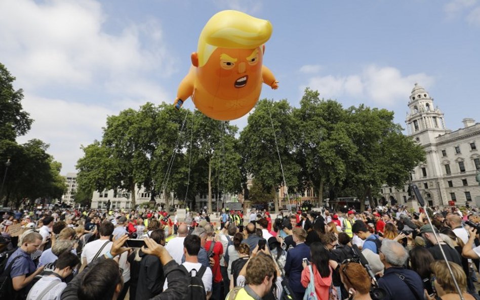 Zgodnie z zapowiedziami nad brytyjską stolicą lata wielki, 6-metrowy balon przedstawiający nagiego Trumpa w pieluszce i telefonem komórkowym w dłoni.