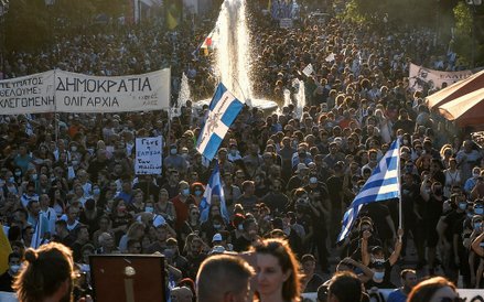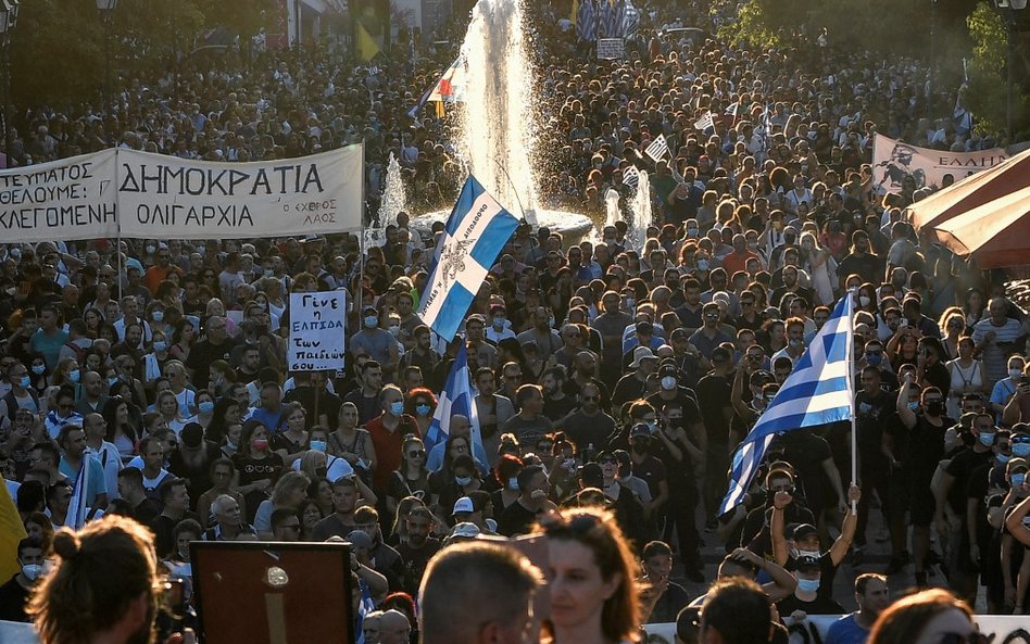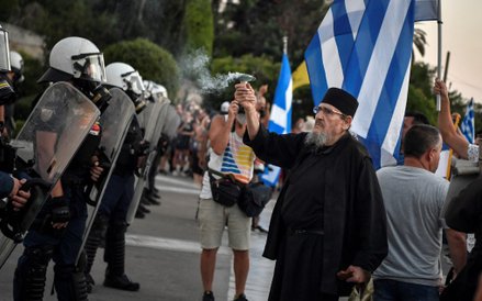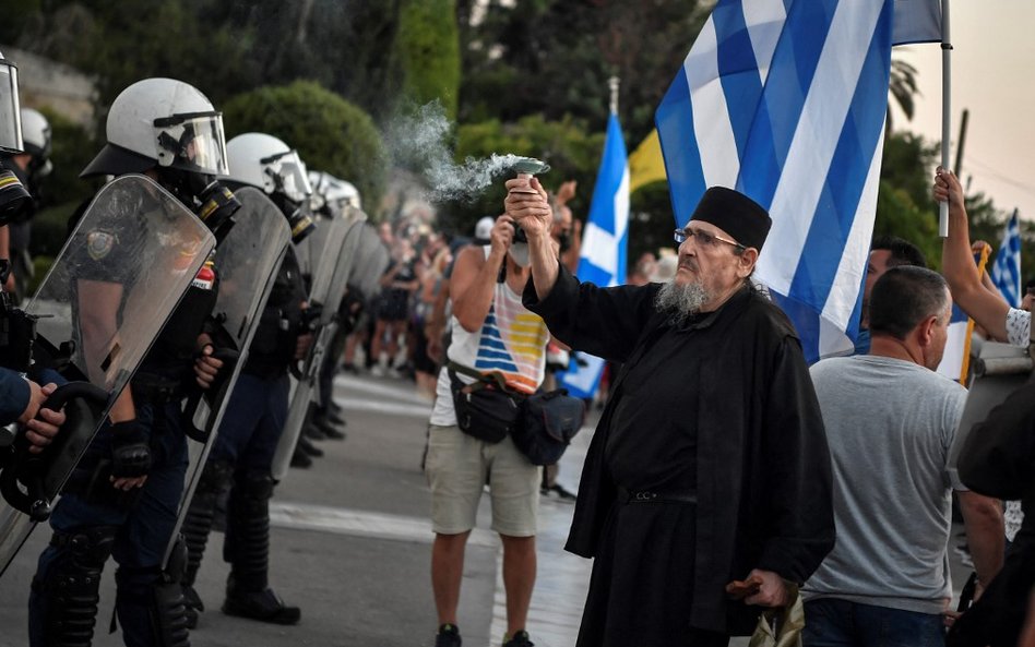 Ponad 7000 osób, niektórzy trzymając krzyże, zgromadziło się przed greckim parlamentem, aby zaprotestować przeciwko szczepieniom. W zeszłym miesiącu w Atenach zorganizowano podobne protesty, podczas których również doszło do aktów przemocy.