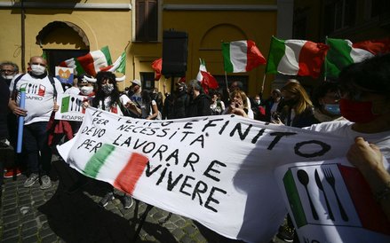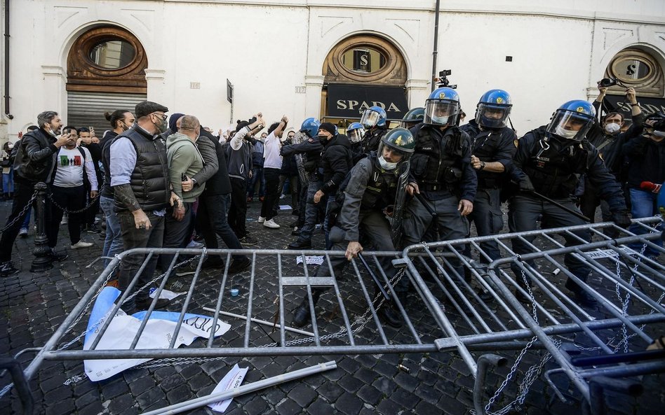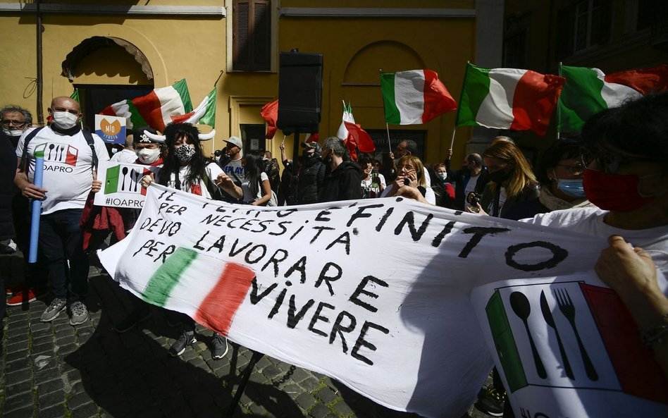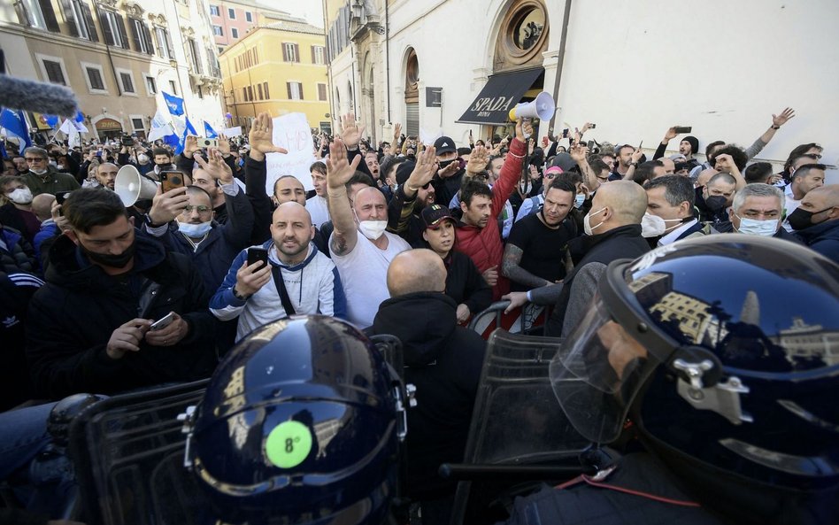 Przed pałacem, w którym obradują połączone izby włoskiego parlamentu, zgromadziło się kilkuset restauratorów, którzy protestowali przeciwko obostrzeniom związanym z pandemią.