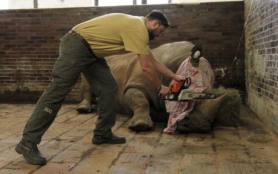 W tym tygodniu w ogrodzie zoologicznym Dvůr Králové piłą łańcuchową odcięto róg pierwszego z kilkunastu miejscowych nosorożców, by chronić życie zwierzęcia przed kłusownikami, którzy dla cennych rogów posuwają się do atakowania w europejskich zoo.