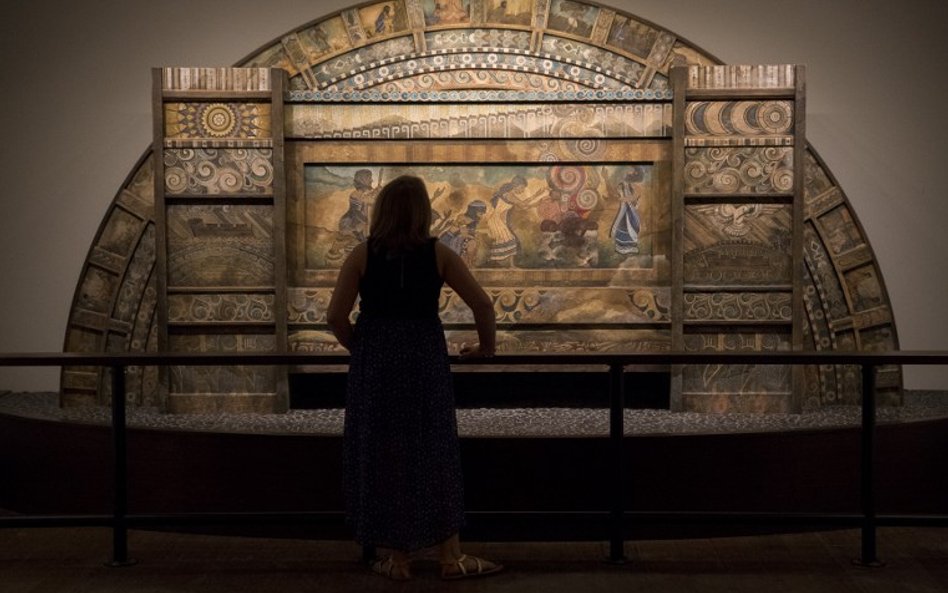 Wewnątrz arki znajdują się figury biblijnych postaci i drewniane zwierzęta w klatkach.
