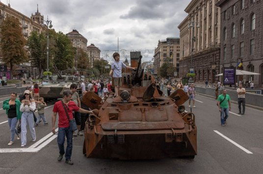 W sobotę w centrum Kijowa wystawiono dziesiątki znacznie uszkodzonych rosyjskich pojazdów opancerzonych. „Parada rosyjskich czołgów w centrum Kijowa. Ale jest niuans…” - ironicznie skomentował ukraiński parlamentarzysta Roman Hryszczuk.