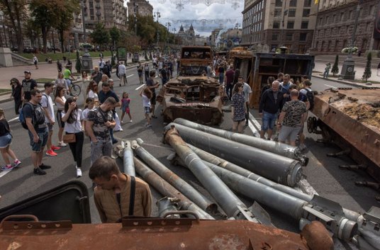 W Kijowie odbywa się wystawa zniszczonego rosyjskiego sprzętu wojskowego. „Wróg planował zorganizować »paradę« na Chreszczatyku w kilka dni (od rozpoczęcia inwazji - red.). Rosjanom się nie udało. Nasze siły zbrojne odpowiedziały” - skomentował wiceszef Kancelarii Prezydenta Ukrainy Kyryło Tymoszenko.
