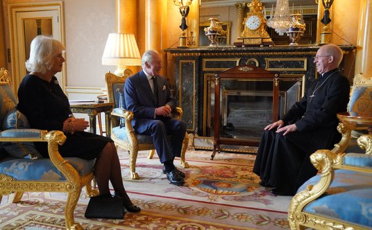 Król rozpoczął popołudnie od spotkania z Justinem Welby, arcybiskupem Canterbury. Władca Wielkiej Brytanii jest też głową Kościoła anglikańskiego, a Welby jest najstarszym jego arcybiskupem. Podczas Rady Akcesyjnej, Karol II zobowiązał się dbać o bezpieczeństwo Kościoła Szkocji.