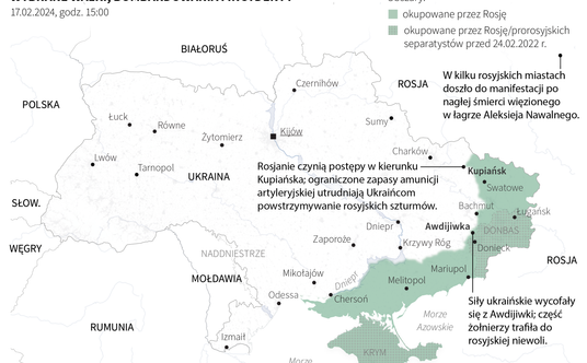 Tymczasem ministerstwo obrony Rosji oświadczyło, że jego żołnierze przejęli pełną kontrolę nad Awdijiwką i przeszli 8,6 km w tej części linii frontu.