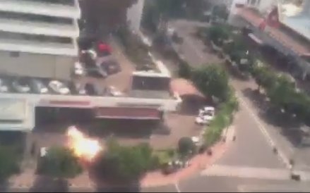Agencja Reuters cytując lokalne media podaje, że w Dżakarcie eksplodowało sześć bomb, a jeden z ataków bombowych miał być dziełem terrorysty-samobójcy. Jedna z bomb miała eksplodować w kawiarni Starbucks, do której następnie wkroczyli uzbrojeni policjanci. Świadek wydarzeń twierdzi, że w kawiarni zginęły co najmniej trzy osoby, a policja prowadziła wymianę ognia z kimś znajdującym się na dachu budynku.