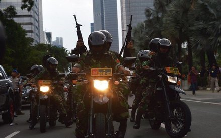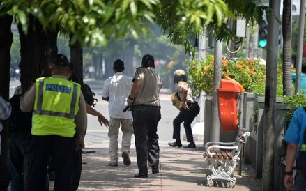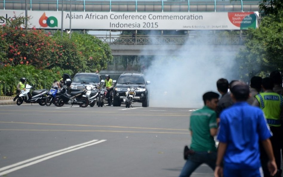 Indonezyjska policja podała, że w ataku - prócz terrorysty samobójcy - wzięło udział jeszcze 14 uzbrojonych napastników. Rzecznik policji przyznał, że służby bezpieczeństwa otrzymały ostrzeżenie, iż kraj ten może zostać zaatakowany przez terrorystów z Daesh, ale dodał, iż na razie nie wiadomo, kto jest odpowiedzialny za czwartkowy atak. Świadkowie twierdzą, że napastnicy byli ubrani na czarno i poruszali się na motorach.