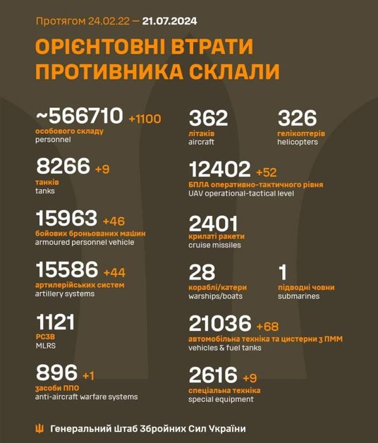 Ostatniej doby rosyjska armia straciła kolejnych 1100 żołnierzy.
