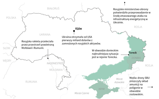 - Rosja ma środki, aby w najbliższej przyszłości przeprowadzić nowe, masowe ataki na Ukrainę z wykorzystaniem rakiet i dronów – powiedział w rozmowie z RBK-Ukraina Oleksandr Musienko, szef ukraińskiego Centrum Badań Wojskowych i Prawnych. - Rosjanie mają rezerwy na dwa ataki na dużą skalę - ocenił. - Myślę, że przygotowują się do przeprowadzenia jednego z nich bliżej Nowego Roku, może nawet w sylwestra. Kolejny nastąpić może 7-10 dni po pierwszym – uważa Musienko.