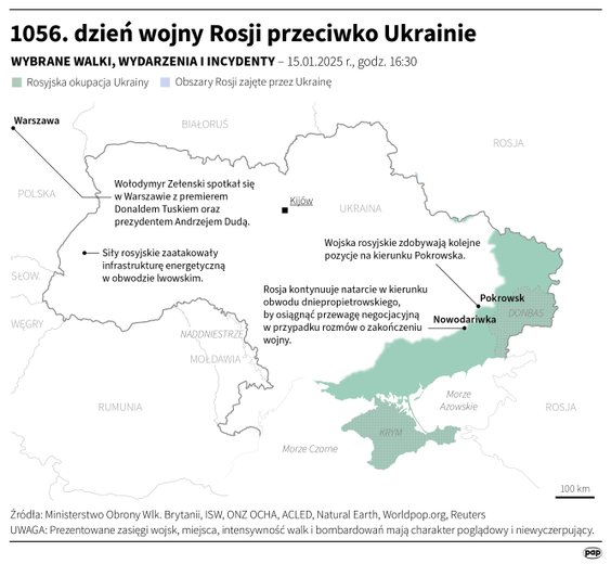 Zełenski mówił o tym na konferencji prasowej w Kijowie, na której występował wraz z brytyjskim premierem Keirem Starmerem. Ze słów Zełenskiego wynika, że Rosjanie mają jeszcze inicjatywę jedynie w obwodzie donieckim.