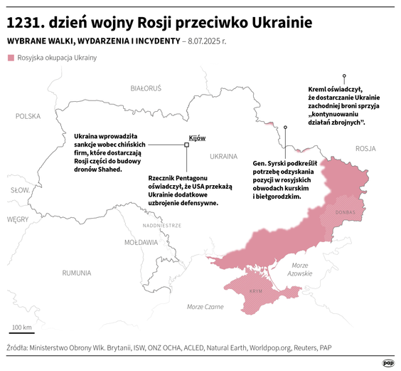 Prezydent USA Donald Trump rozważa wysłanie Ukrainie dodatkowego systemu obrony powietrznej Patriot, co byłoby jego pierwszą dużą decyzją o dostarczeniu broni Kijowowi, niewynikającą z wcześniejszych ustaleń administracji Bidena – podał „Wall Street Journal”. W ostatnich dniach z Białego Domu płynęły sprzeczne sygnały: 2 lipca Pentagon ogłosił wstrzymanie dostaw broni z powodu niskich zapasów, a Trump zaprzeczył, jakoby stał za tą decyzją, deklarując chęć wysłania większej ilości uzbrojenia.
