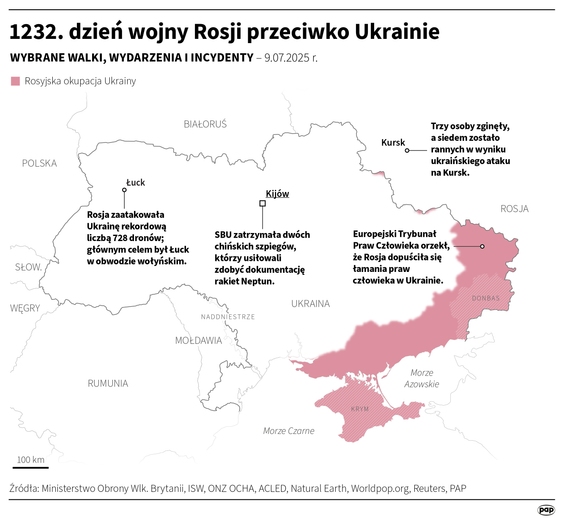 W nocy z 9 na 10 lipca Kijów padł ofiarą zakrojonego na szeroką skalę ataku dronów i rakiet balistycznych. W mieście słychać było głośne eksplozje, odnotowano pożary i zniszczenia.