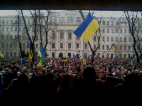 Na kijowskim Majdanie Niepodległości przemawiał były prezydent Gruzji Micheil Saakaszwili. "Putin użył wszystkich mozliwych sposobów, by zdestabilizować wasz kraj od środka. Ale zamiast tego, wy wzmocniliście swój kraj. Putin jest odważny tylko wtedy, gdy inni się boją. Ale tu nie ma nikogo, kto by się bał." - mówił do tłumu.